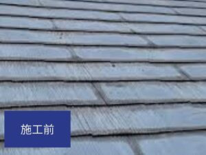 屋根の表面は全体的に色あせが進んでおり、ところどころにコケや汚れの付着も確認できました。
