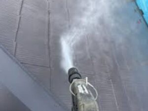 まずは屋根表面にこびりついた汚れやカビ、古い塗膜を高圧洗浄でしっかりと除去!