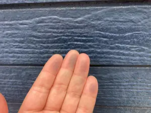 これは、外壁の塗料が紫外線や雨風などの影響で劣化し、粉状になって浮き出してきている状態です。